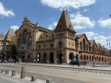 (clockwise from top left): The Neo-Gothic Central Market Hall; the main hall of the Central Market, flanked by food stalls; there was no shortage of sausages; an abundance of paprika,